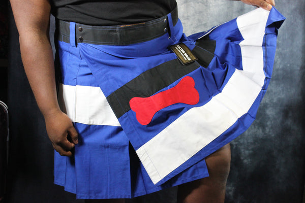 Back by popular demand this canvas kilt is one of the first brought back from our newly revived Kilted Bros line of kilts! Get ready for fun in the sun as you pup out with this Puppy Pride Flag Kilt! This kilt features a pair of large, built-in pockets to keep your belongings close at hand, belt loops to add your favorite belt, sturdy snaps for easy on and off, and a wide apron to make sure everything stays covered while giving easy access to sniff a puppy butt! (With consent of course!)