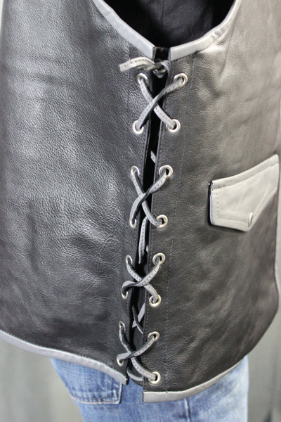 Made our of the softest garment leather and lined for your comfort, these amazing vests are great to wear year round. Yes they have internal AND external pockets! The laced side panels allow you to replace laces with any color you wish to flag. So many possibilities for such a great price!