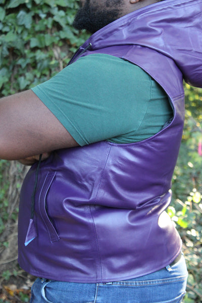Show off your arms while staying snug with this fantastic Otter and Fox product, now available in a variety of options! Made out of the softest garment leather and lined for your comfort, these amazing hoodies are great to wear year round. This sleeveless hoodie is modeled after popular work out gear to give you that hot gym body look while indulging your love of leather