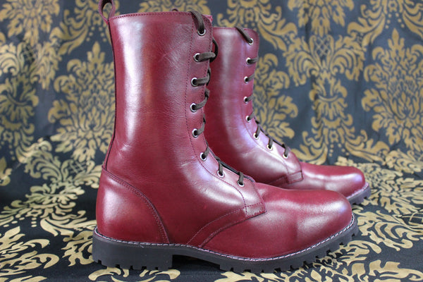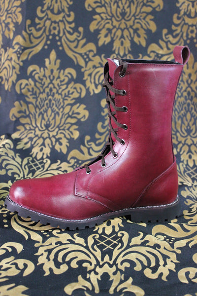 Designed in conjunction with the experts at Wolfstryker Leather, these boots are 11" tall, with 8 eyelets. Rugged and durable, we hand make each pair. YES we have other colors, contact us for something custom.