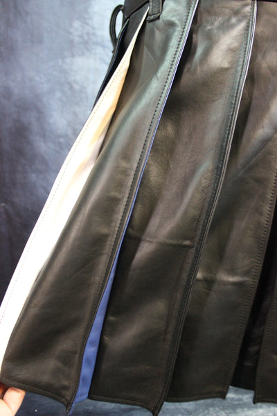 These handcrafted Kilts are the built for comfort. Crafted out of lambskin, one of the softest leathers around, these kilts are soft to the touch, drape well, and have permanently sewn in pleats to keep that Iconic kilt shape. Customize your kilt with our wide selection of colors to match any outfit or flag your fetish! These kilts have 4 inches of built-in adjustability with out snap style waistband, plus belt loops for additional support or to attach some stylish suspenders.