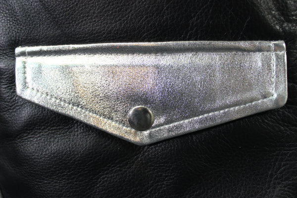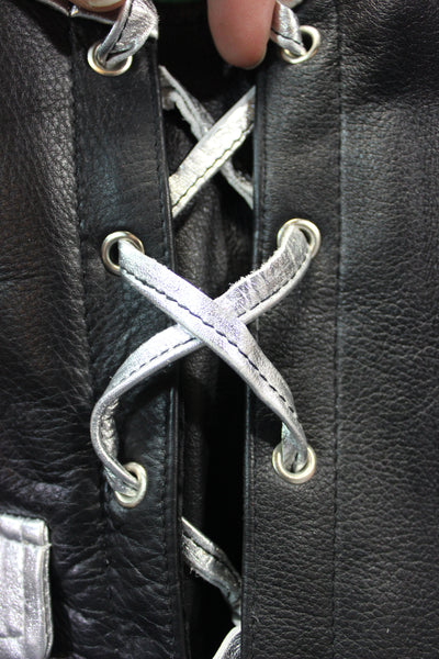 OnF Leather Bar Vest - Black with Silver Highlights