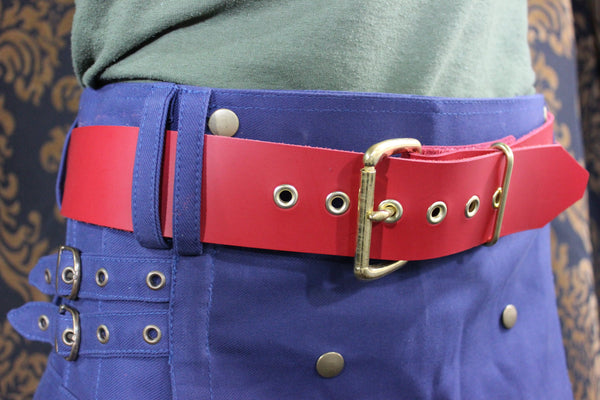 These belts are hand made in the USA with the best quality latigo leather we can source! This simple but sturdy piece of gear is a great example of our commitment to quality and backed with our lifetime guarantee. These belts are 2" wide and can be made with a wide range of colors and hardware finishes to compliment any outfit.