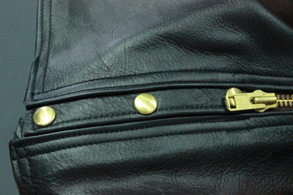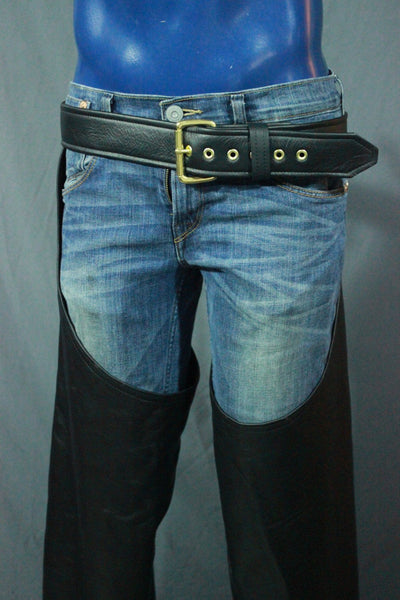 100% hand crafted in the USA with meticulous attention to detail, these amazing chaps are made with our best black leather. The bottom of these chaps snap together for ease of wear.