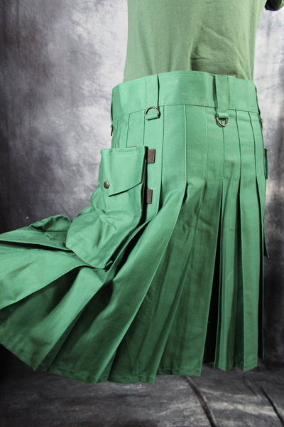 Disfrute de la brisa del verano mientras trabaja al aire libre con esta falda escocesa utilitaria de alta resistencia, ¡ahora en Kelly Green! Esta falda escocesa está hecha con lona resistente, tiene amplios bolsillos incorporados y muchos bucles y anillos para sujetar herramientas y accesorios, lo que la convierte en la opción perfecta para todas sus actividades al aire libre como acampar, trabajar en el jardín, caminar y más. Con los pliegues cosidos permanentemente, cuidar esta falda es muy fácil y se puede lavar a máquina para limpiar fácilmente cualquier desorden.