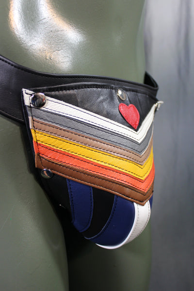 Muestra tu Leather Bear Pride como puedas, ¡especialmente con este fantástico deportista de cuero! Magníficamente elaborado y con una pata de oso en la parte superior, este deportista es una pieza perfecta para que cualquier oso o amante de los osos pueda poseerlo y usarlo. Disponible en dos tamaños de bolsa diferentes: Bolsa estándar: 9" de ancho (3 broches de ancho) y Bolsa extra ancha: 11" de ancho (4 broches de ancho)