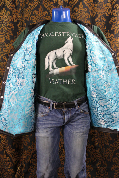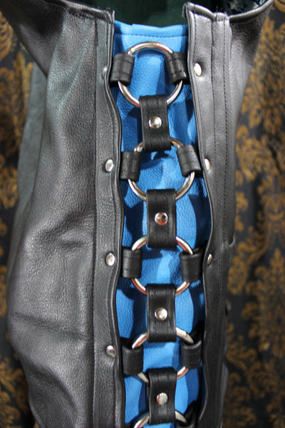 100 % fabriqué à la main aux États-Unis avec une attention méticuleuse aux détails, cet incroyable gilet de style occidental est fabriqué en cuir noir doux et doublé à l'intérieur pour votre confort. Les côtés sont mis en valeur par des anneaux en nickel massif et un étonnant panneau bleu. La doublure est notre choix mais toujours quelque chose de fabuleux ! Doublures personnalisées disponibles.