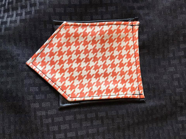 This hand crafted leather pocket flag is deigned with your favorite pup player in mind. Made of the finest printed leather we can buy, this edition features an inside pocket for carrying business cards, money, or whatever! These flags are worn in your back pocket or over the waistband of your pants to show your love of all things pupish! Houndstooth is traditionally used to flag a fetish for 'biting,' and with our selection of colors you can flag an additional kink of your choice! Limited quantities, so order quickly to get yours.