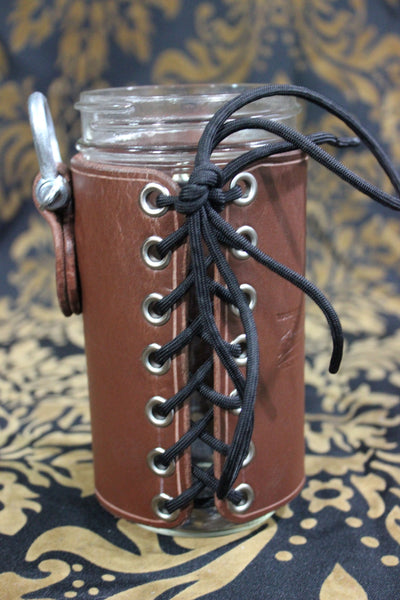 Leather wrapped mason jar mugs